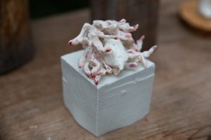 Serie sculpturen na de diagnose BRCA2 van porselein, klei, messing en cortenstaal